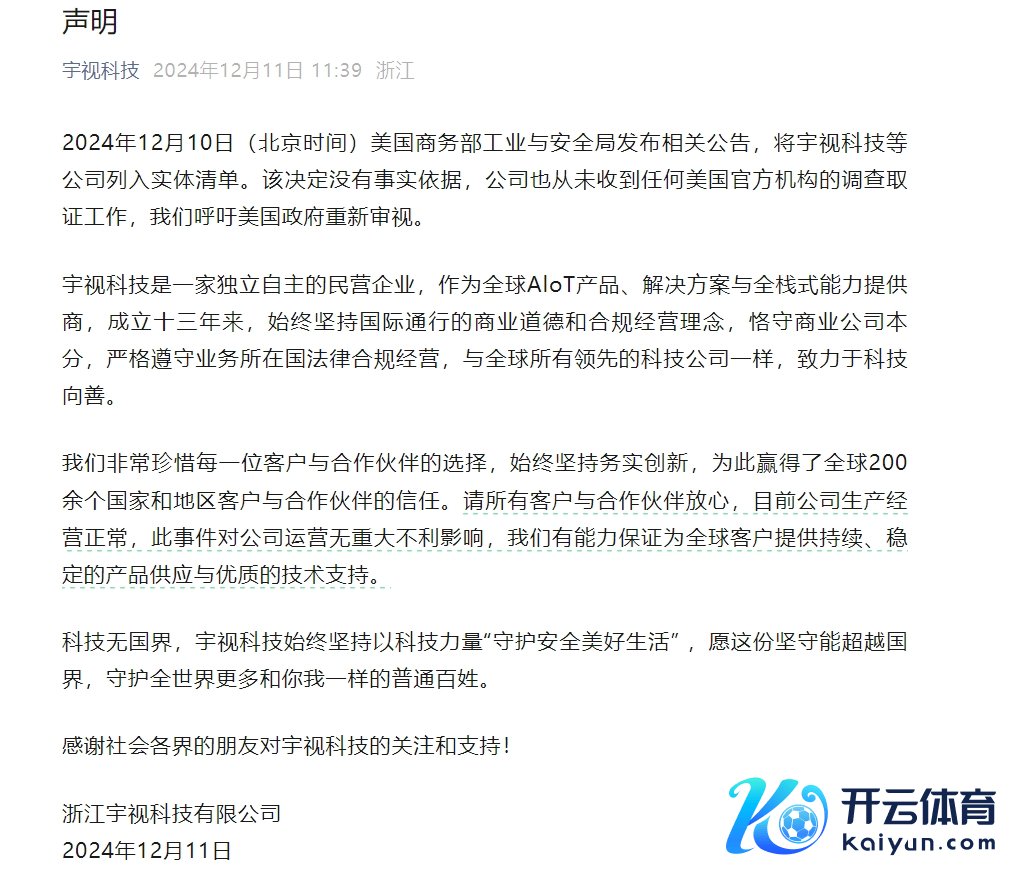 宇视科技:公司被列入“实体清单”莫得事实依据 现在坐褥方针平常宇视科技:公司被列入“实体清单”莫得事实依据 现在坐褥方针平常